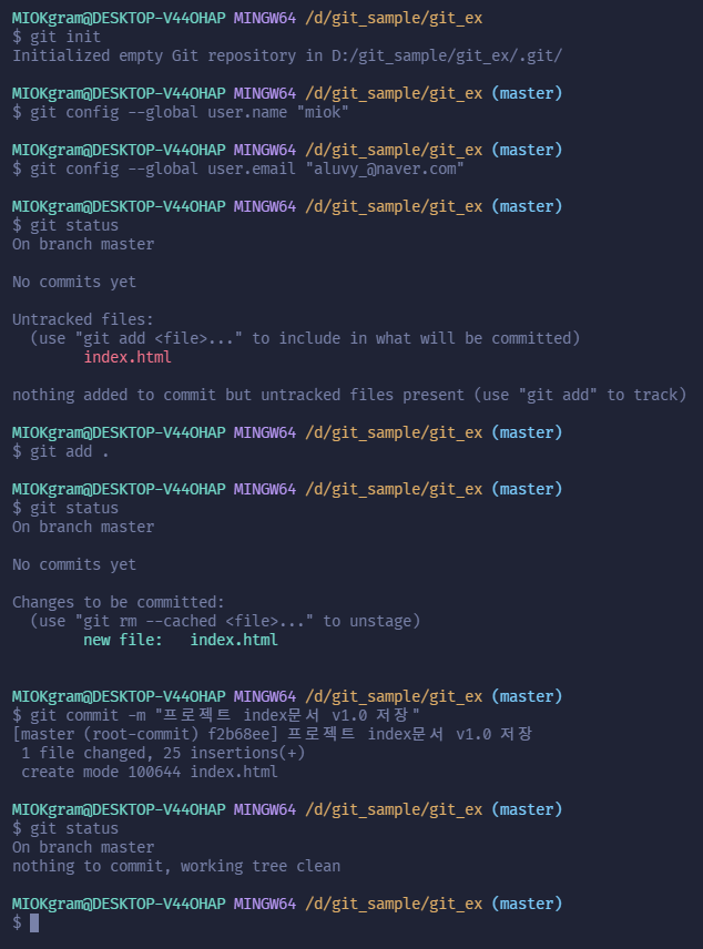 커밋하기 전에 git status 명령으로 모든 것이 Staged 상태인지 확인하고 git commit을 실행하여 커밋하도록 합니다.