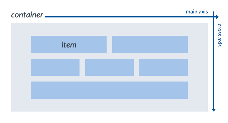 - 주축이 되는 main-axis와 교차축이 되는 cross-axis의 개념이 있다.