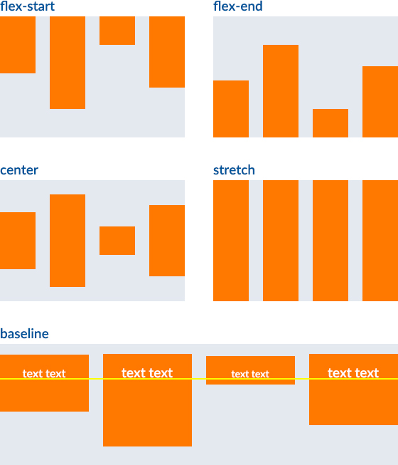 | baseline | container안에 있는 item들을 baseline으로 정렬함 |