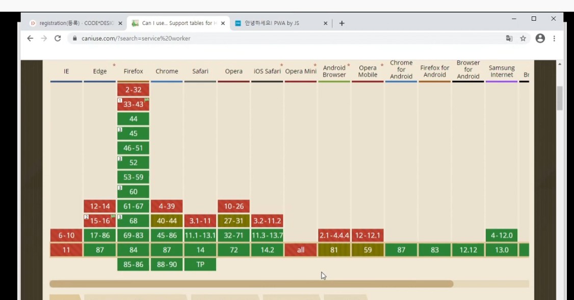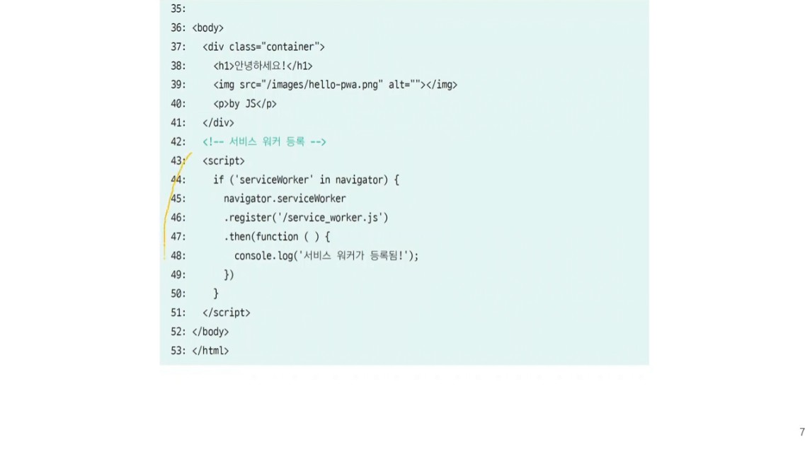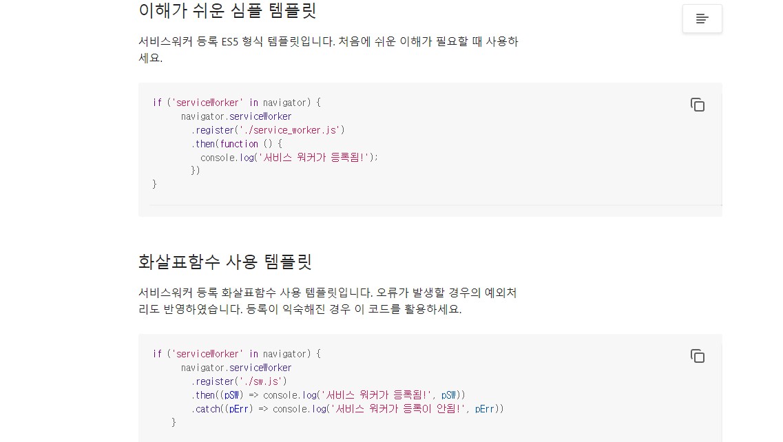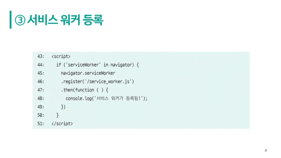 console.log('서비스 워커가 등록됨!');