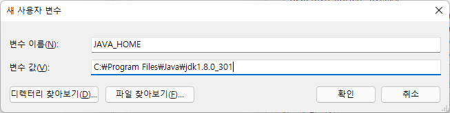 JAVA_HOME C:\Program Files\Java\jdk1.8.0_301
