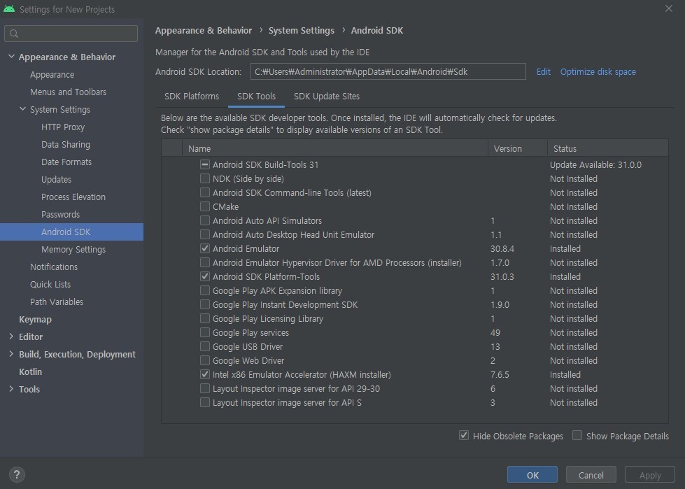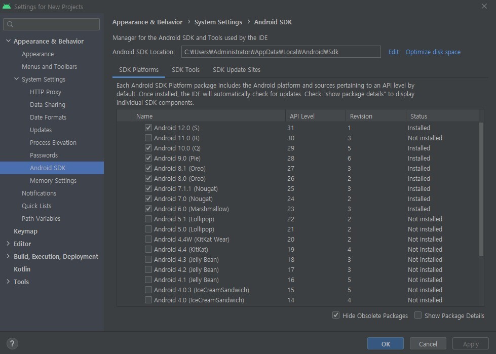 SDK manager 설정하기