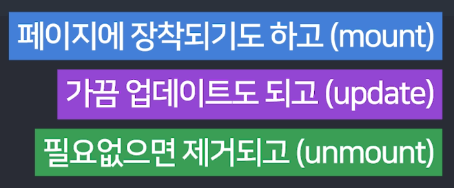 예를 들어서 시간이 많이 걸리는 코드가 필요한 경우 useEffect 안에 써주면, html을 먼저 보여주고 나서 반복문을 돌리게 된다.