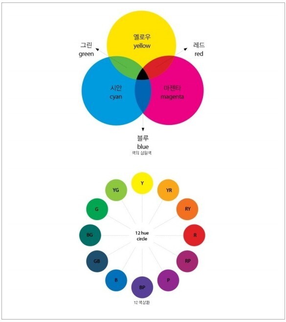 이 색상을 둥글게 배열한 것을 '색상환(hue circle)'이라고 하는데 이 색상환의 원리와 구조를 알면 능숙하게 색을 사용할 수 있다.