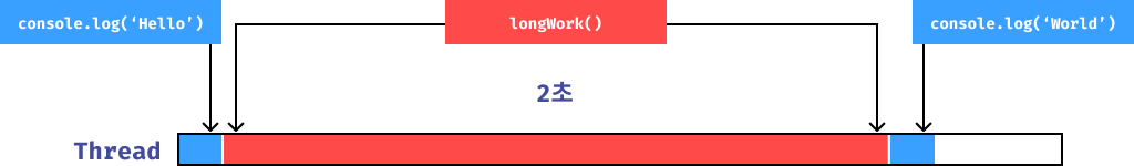 2. 2초가 걸리는 작업을 시작한 후 바로 3. 'World' 라는 단어를 출력하고,