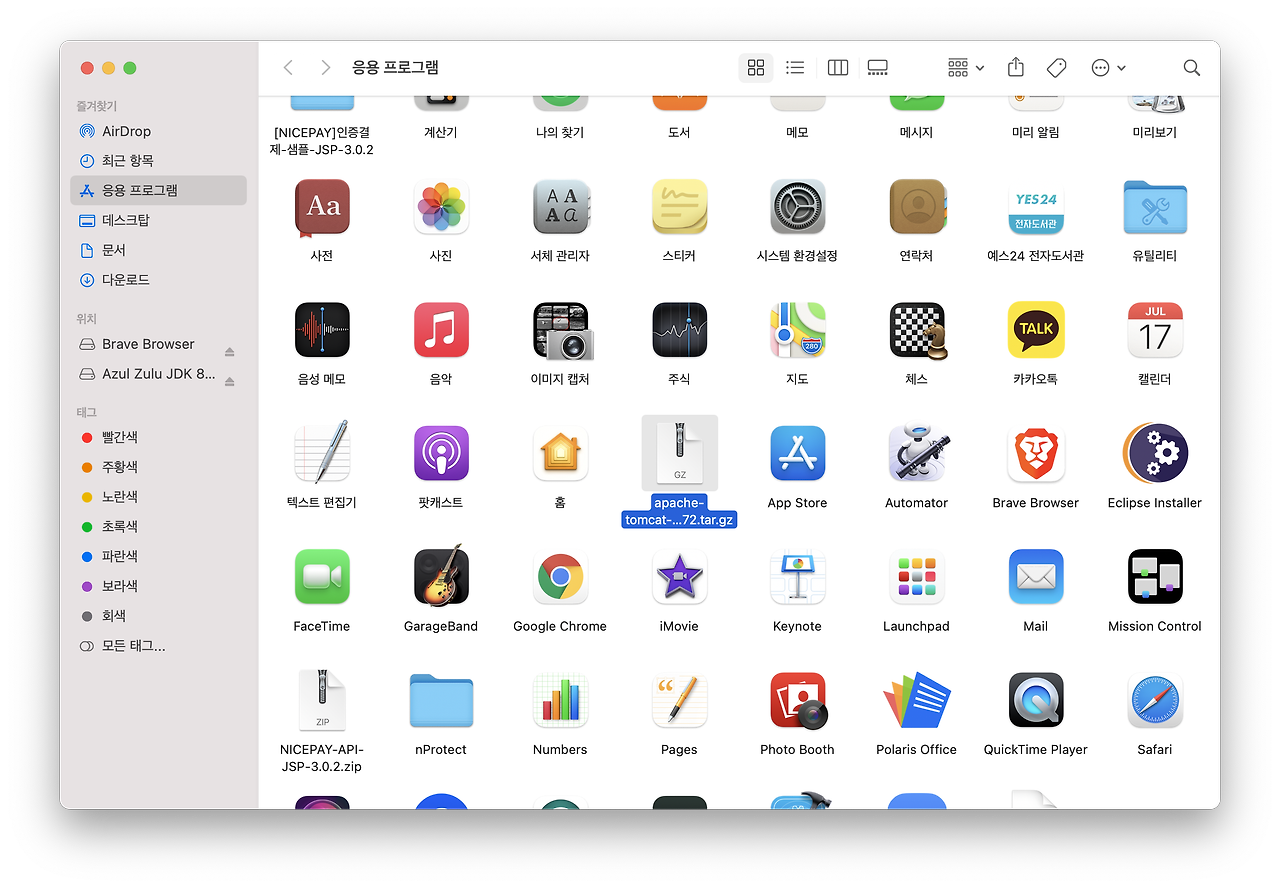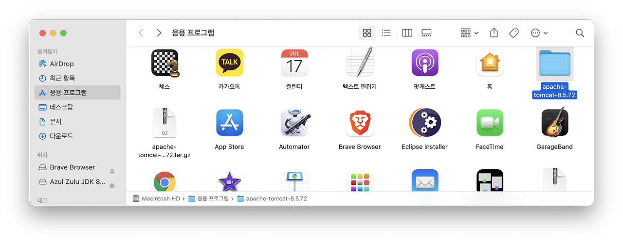 - `Finder`에서 톰캣이 설치된 경로로 접속합니다.