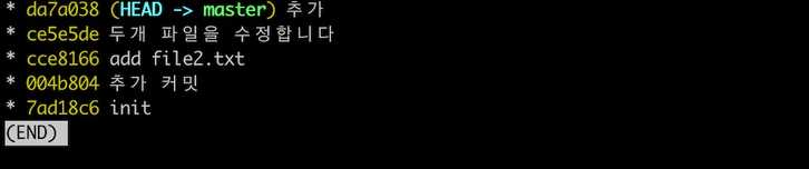 커밋 해시와 메세지만 한 줄로 나오고 더 많은 커밋 그래프를 볼 수 있다.