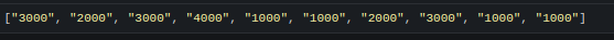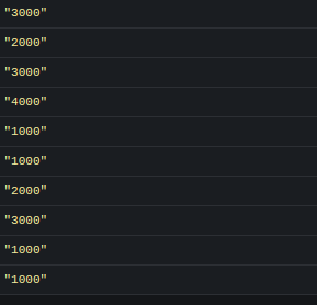 const list = [3000, 2000, 3000, 4000, 1000, 1000, 2000, 3000, 1000, 1000];