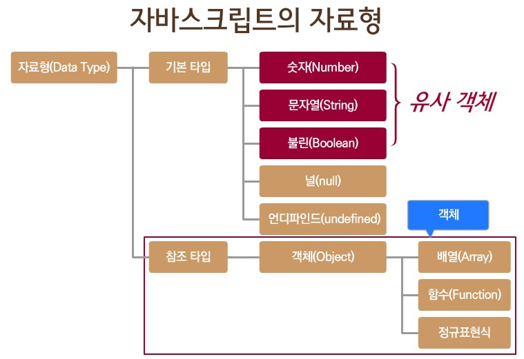 기본타입에는 Number, String, Boolean, undefined, null, NaN 이 있고 참조타입에는 Object가 있다.